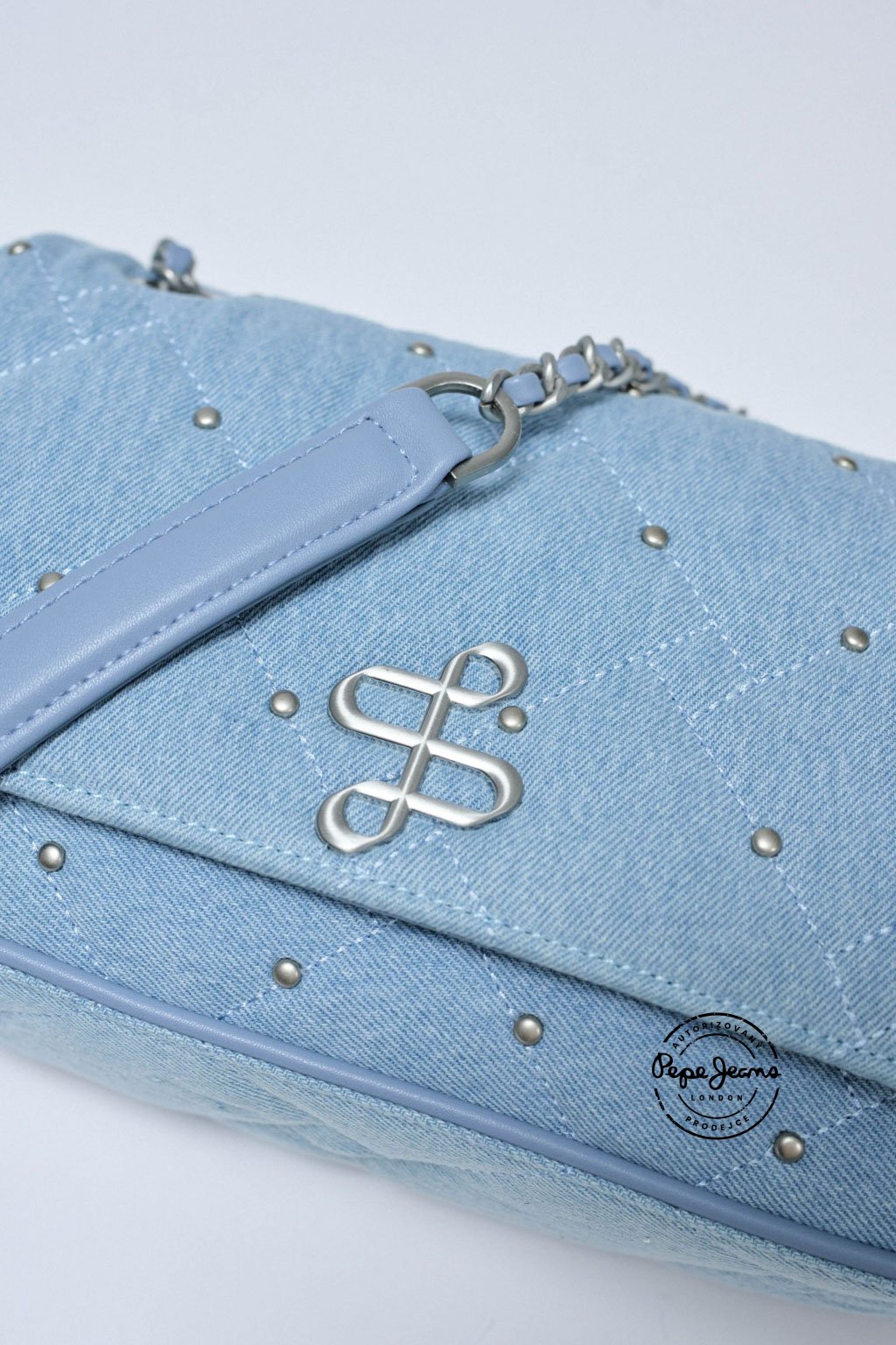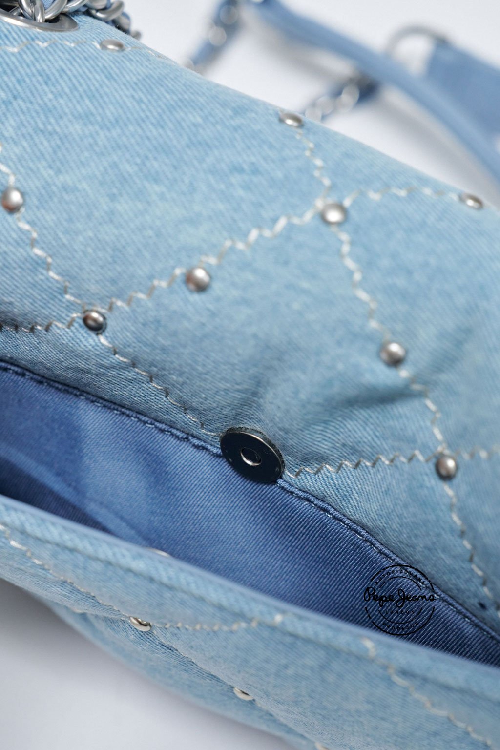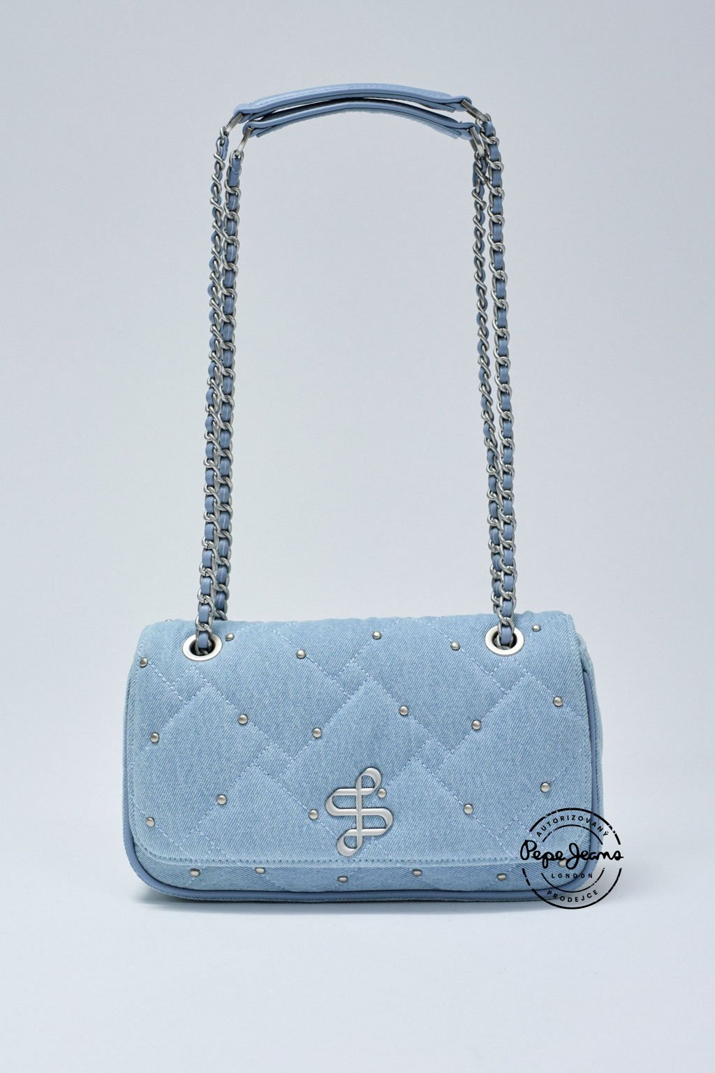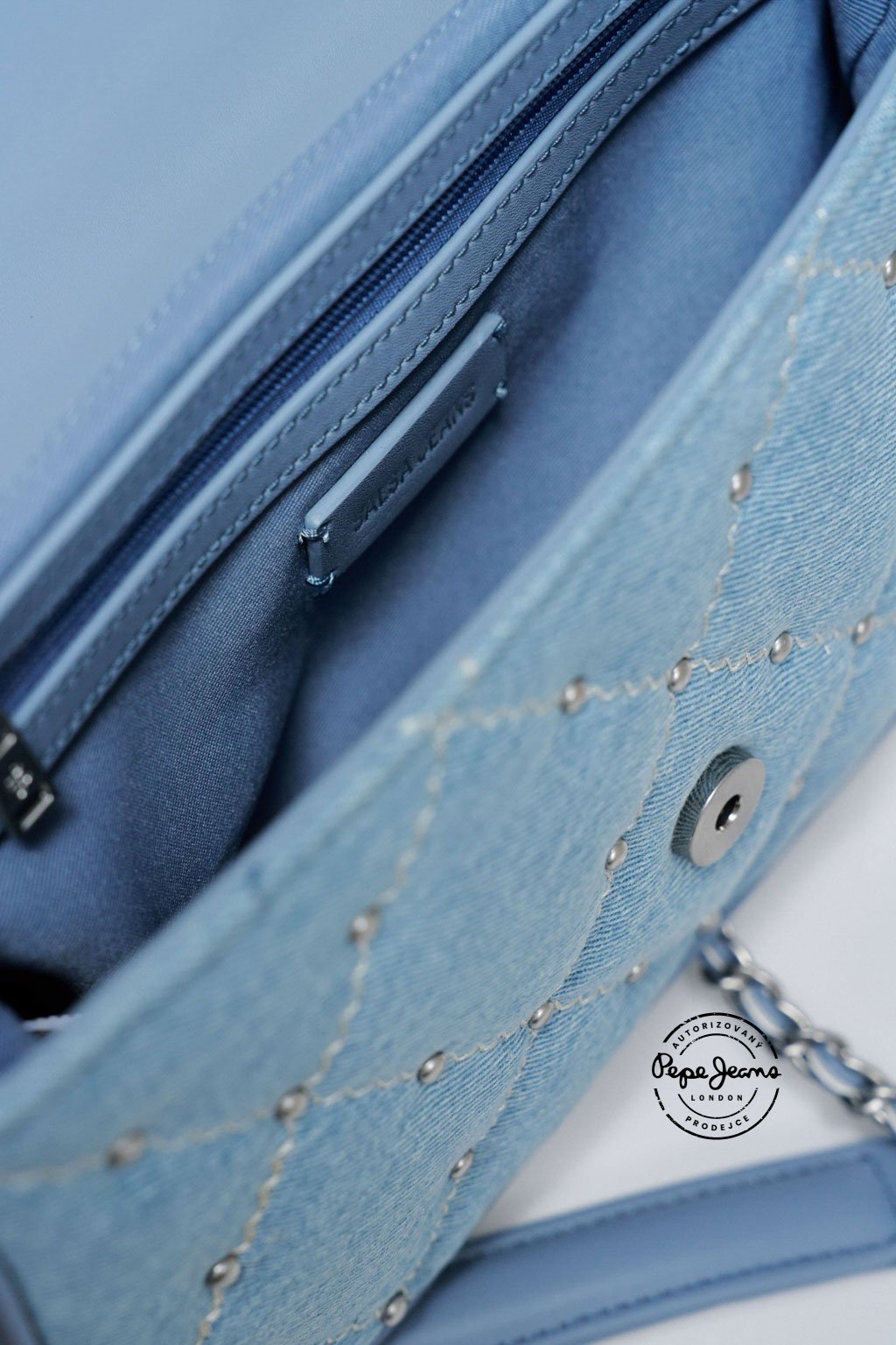 Tato denimová taška se třpytivými aplikacemi v modré barvě je skvělým doplňkem pro každý outfit. Disponuje zapínáním na patentní knoflíky, designovým detailem značky a praktickými vnitřními přihrádkami pro lepší organizaci. S nastavitelným řetízkovým popruhem si ji můžete přizpůsobit dle potřeby. S rozměry 14,5 x 25 x 6 cm je ideální pro každodenní nošení a přidá šmrnc každému stylu.Doplňkové parametry