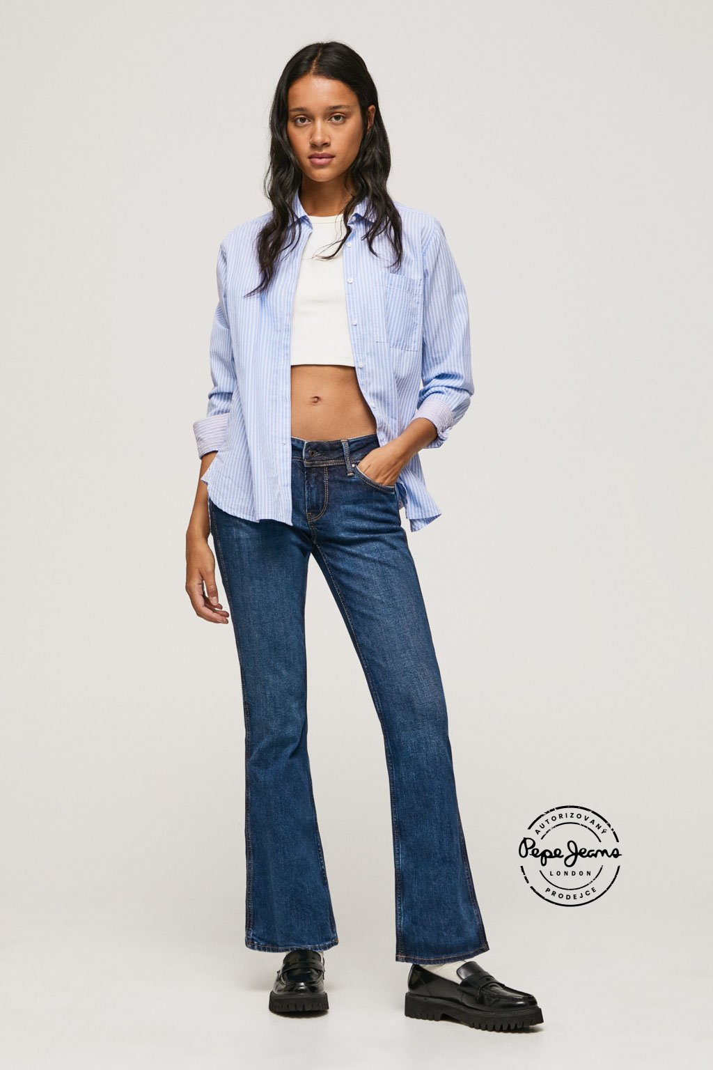 Džíny se středně vysokým pasem a úzkým střihem, který se směrem dolů rozšiřuje do rozšířené nohavice. Vyrobené ze středně tmavého pružného denimu s použitím technologie Wiser Wash®, jež zajišťuje odpovědné a úsporné využití vody při výrobě.Doplňkové parametry