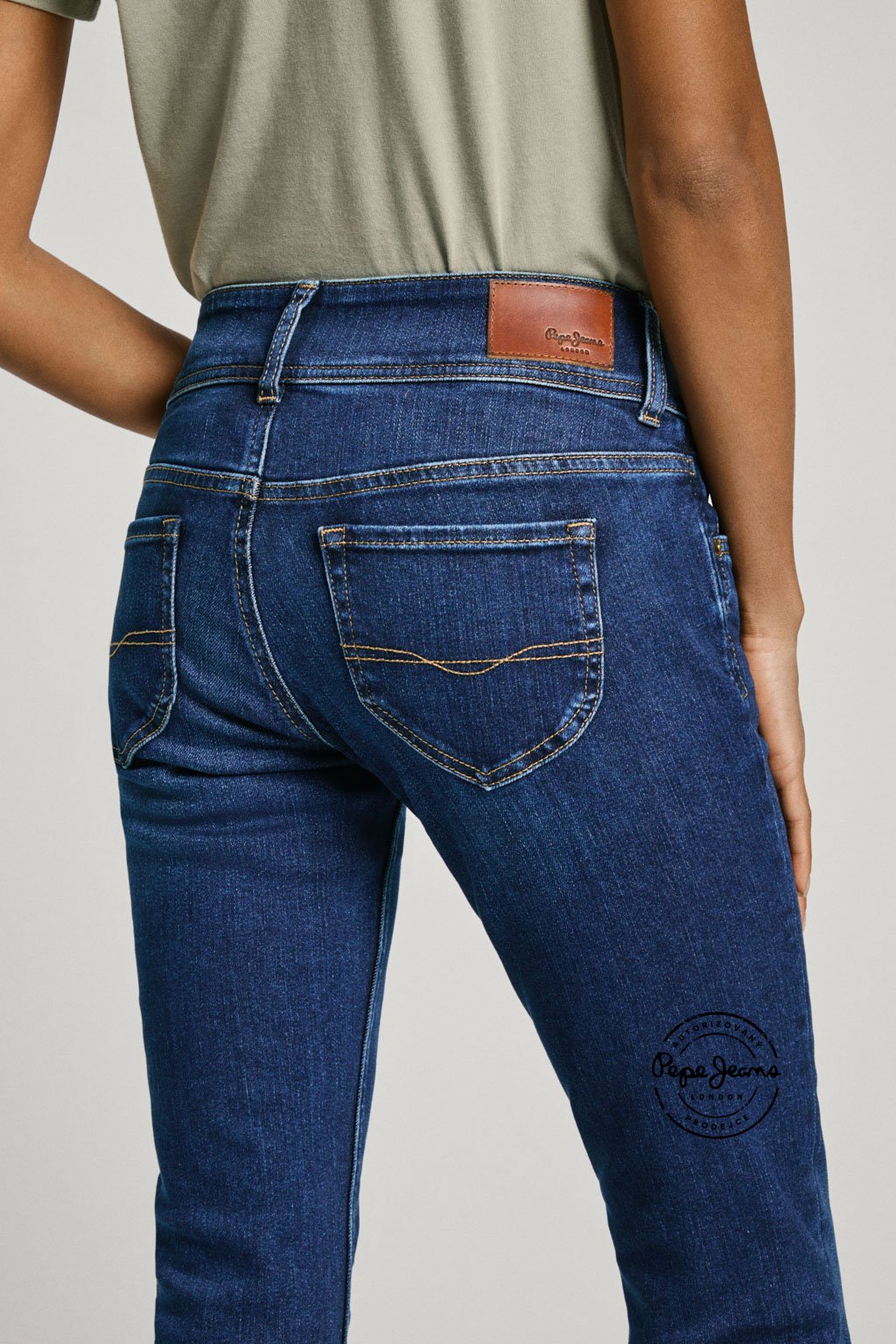Naše klasické slim jeans se sníženým pasem, s detailem minikapsy a širším pasovým lemem. Přicházejí ve středně tmavé barvě s jemným opotřebovaným efektem, který zachovává ženský vzhled. Tento model je vyroben s technologií Wiser Wash, která zajišťuje šetrné využití vody, a kombinuje pohodlí, moderní střih a nadčasový styl vhodný pro každodenní nošení.Doplňkové parametry