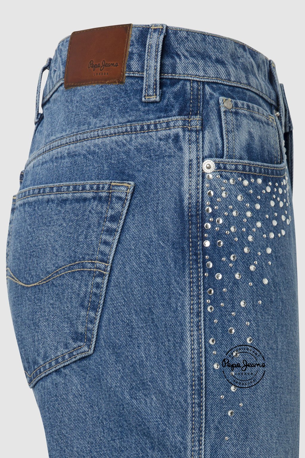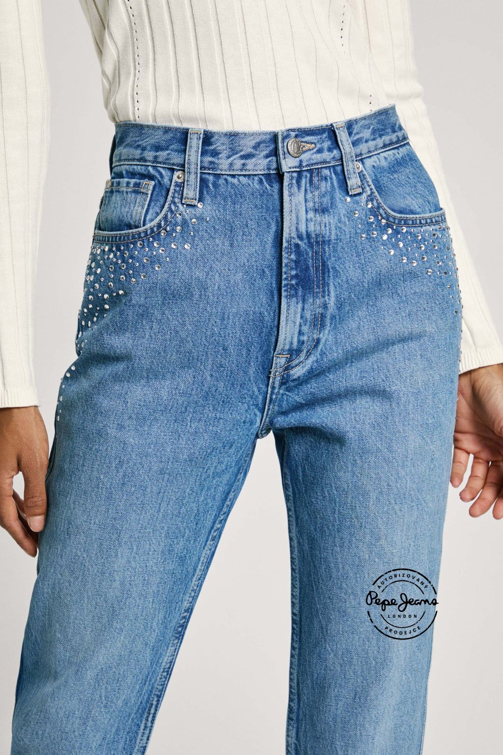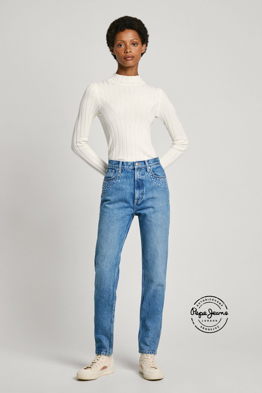 Džíny s extra vysokým pasem a úzkým střihem v svěžím modrém odstínu denimu. Křišťálové kamínky a kovové cvočky dodávají modelu jemný ženský lesk a proměňují tyto klasické džíny v elegantní a výraznější kousek.Doplňkové parametry