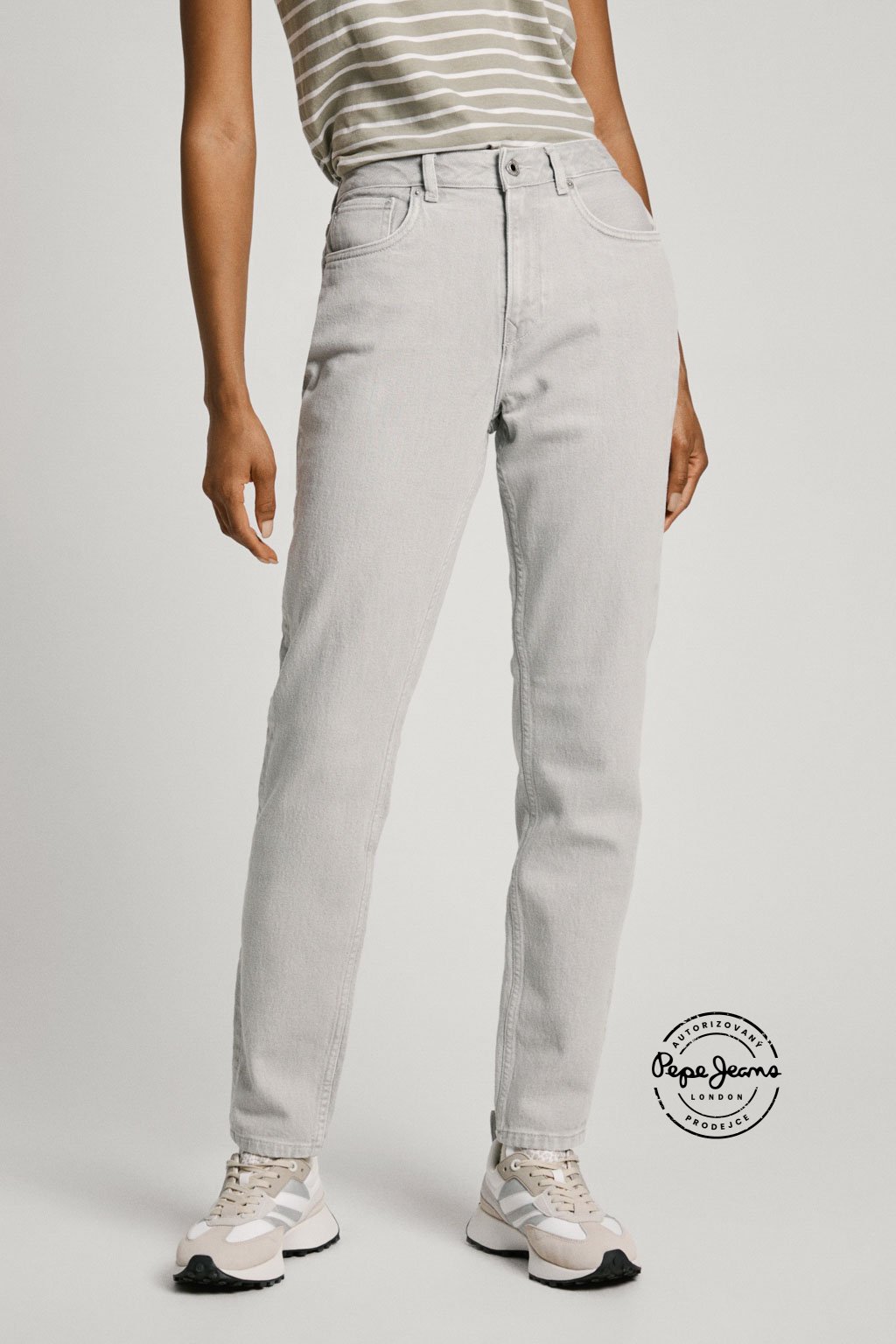 Naše high waist tapered jeans ve velmi světle šedé barvě s jemným ženským omakem. Tento model nabízí moderní zúžený střih, pohodlí a elegantní vzhled vhodný pro každodenní nošení.Doplňkové parametry