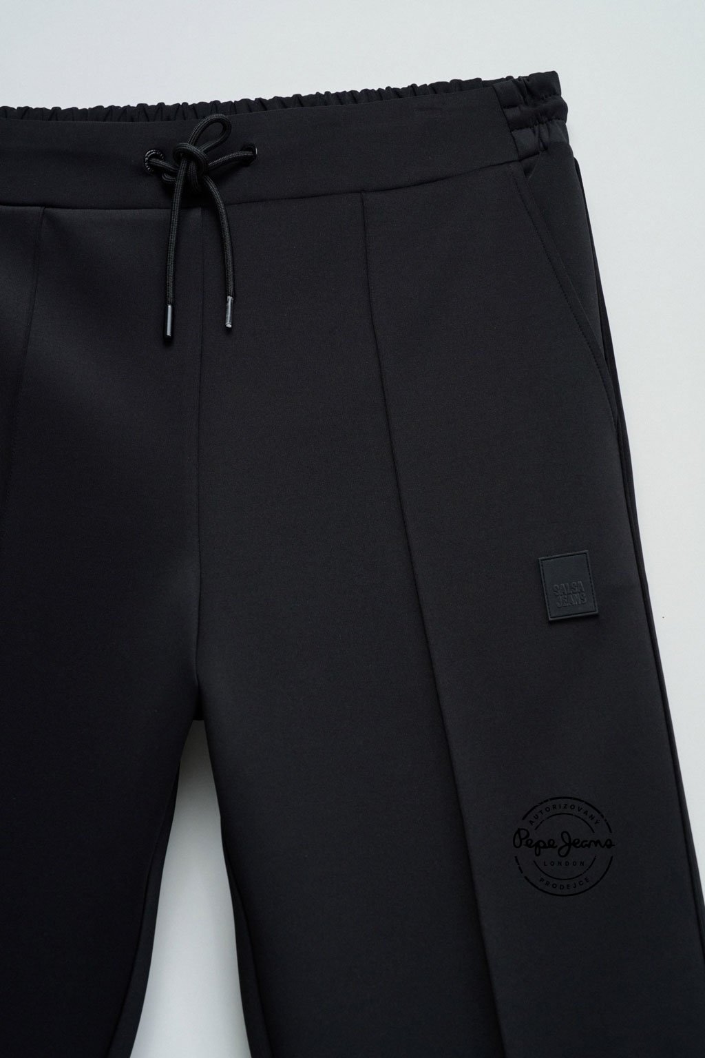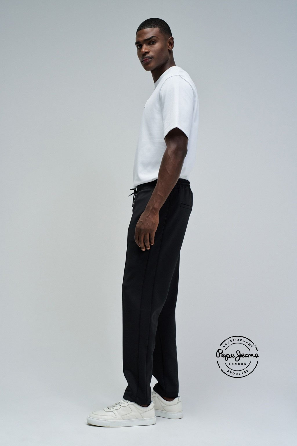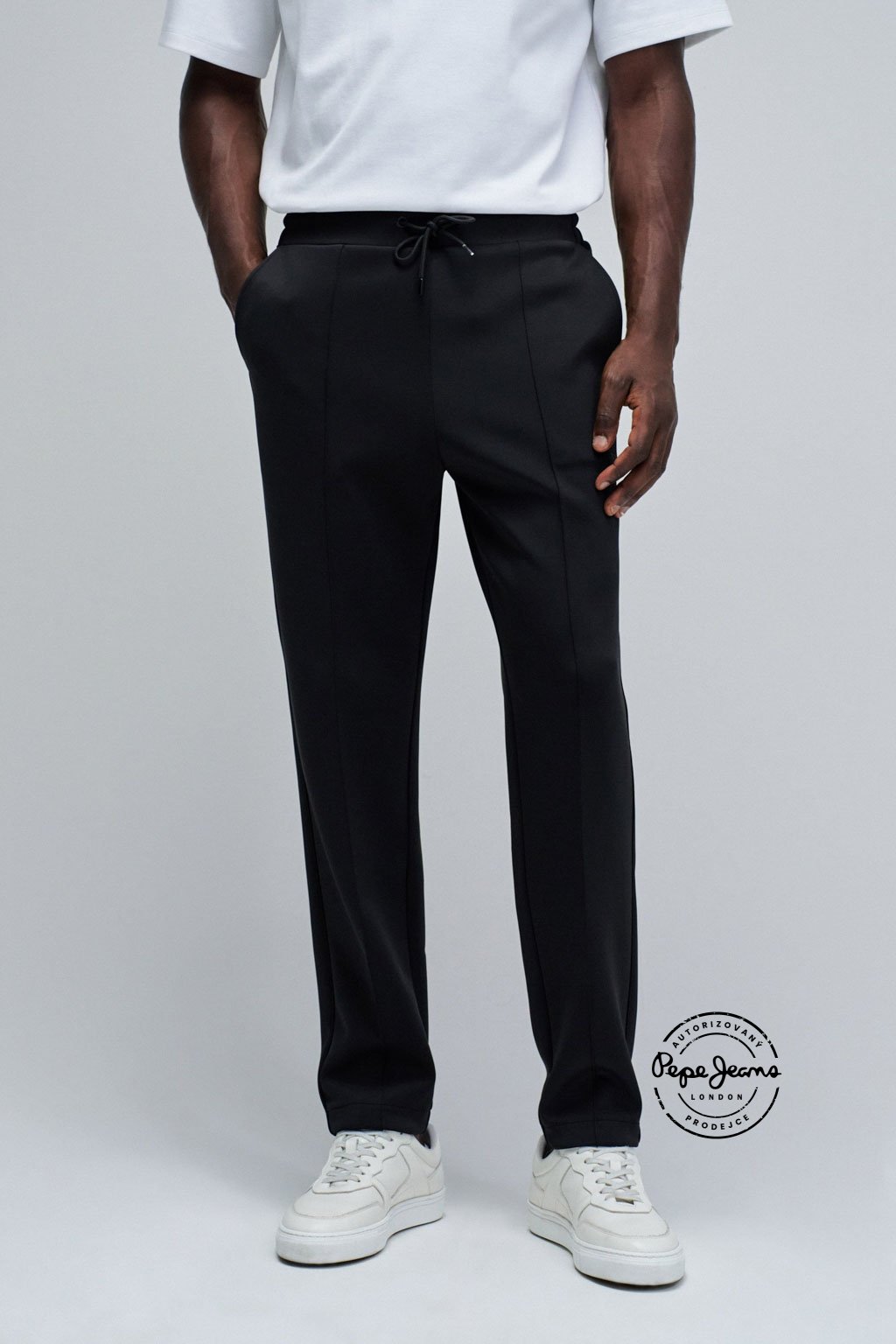 Tyto jogger kalhoty spojují pohodlí tepláků s ležérním stylem džínů a dokazují, že styl a volnost se mohou skvěle doplňovat. Relaxed střih, elastický pas a nastavitelná šňůrka zaručují maximální pohodlí i volnost pohybu. Díky univerzálnímu designu se snadno kombinují – perfektně vypadají s tričkem či mikinou pro uvolněný vzhled, ale i s košilí pro neformální eleganci. Ideální na procházku, odpočinek doma nebo pohodový pracovní den. Vyrobeny z pružného materiálu scuba knit v černé barvě, se středně vysokým pasem, čtyřmi kapsami a dělicím švem po celé délce nohavic.Doplňkové parametry