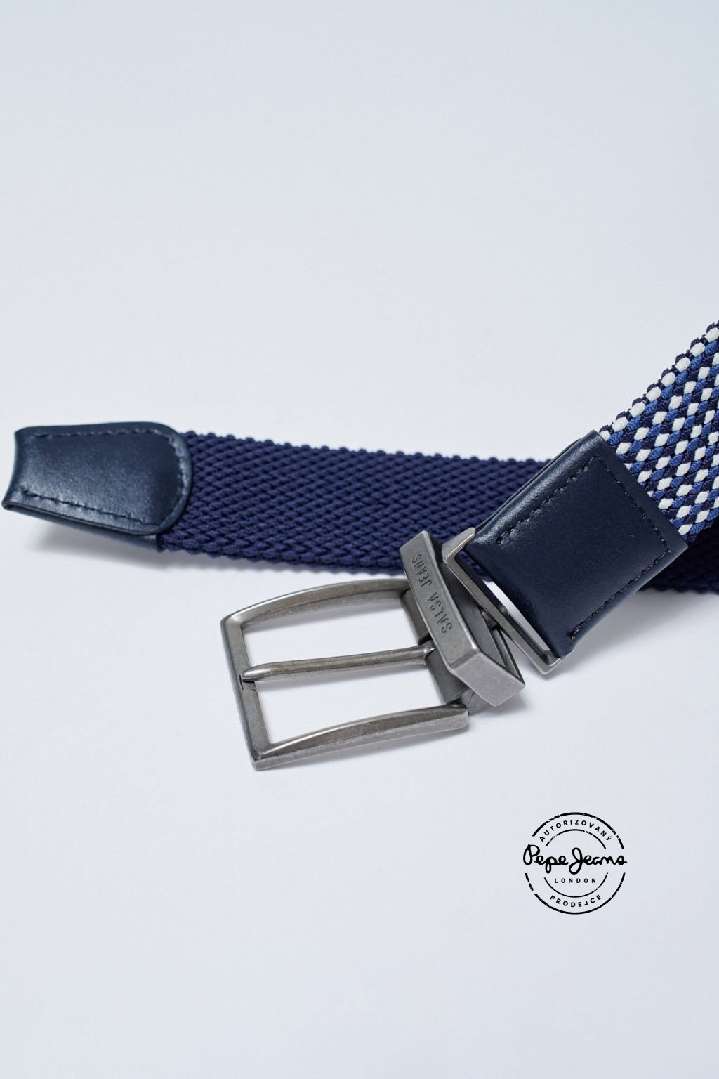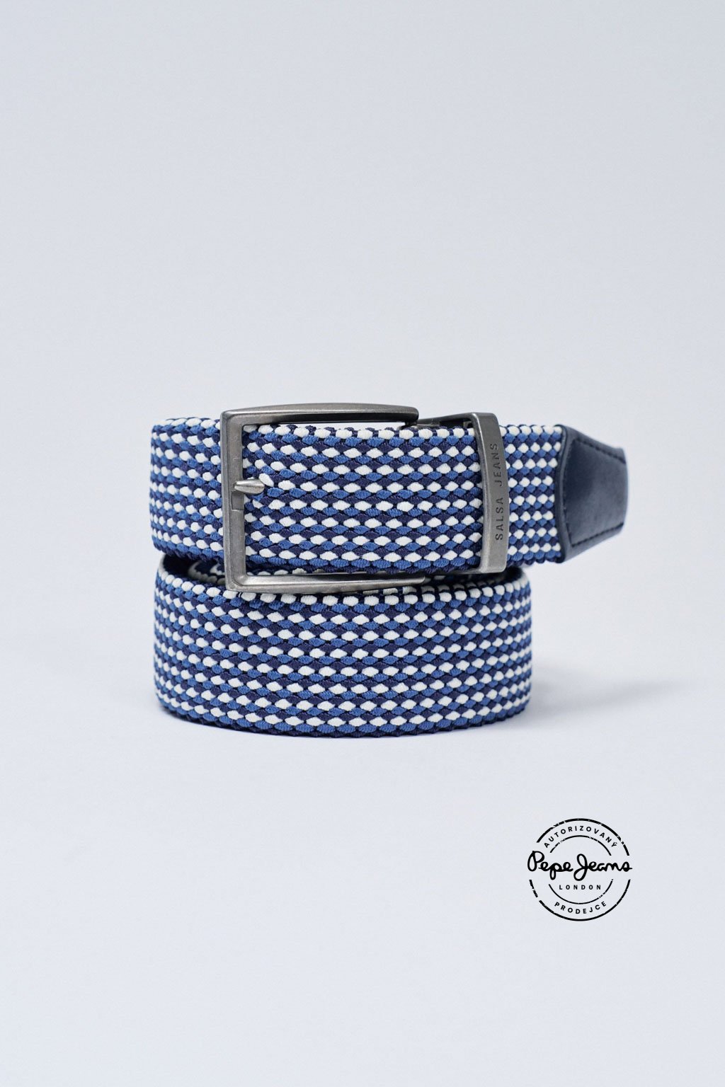 Tento pletený pásek v kombinaci modré a bílé barvy je stylovým doplňkem, který dokonale doladí váš outfit. S kovovou sponou, na které se nachází logo značky, a koženým detailem na přezce, nabízí nejen funkčnost, ale i elegantní vzhled. Ideální pro každodenní nošení, tento pásek přidá šmrnc jak k džínům, tak k šatům či sukním.Doplňkové parametry